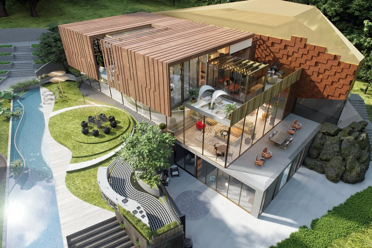 Award-winning OBSIDIAN Virtual Concept House, unveiled in Winter - Spring 2021, represents BADG's inaugural initiative, a groundbreaking design to invite new conversations about the home as a place of thriving for one million Black families. Guided by the belief that Black futures are equitable, sustainable, and liberatory, we have created a virtual space that manifests our collective imaginings.